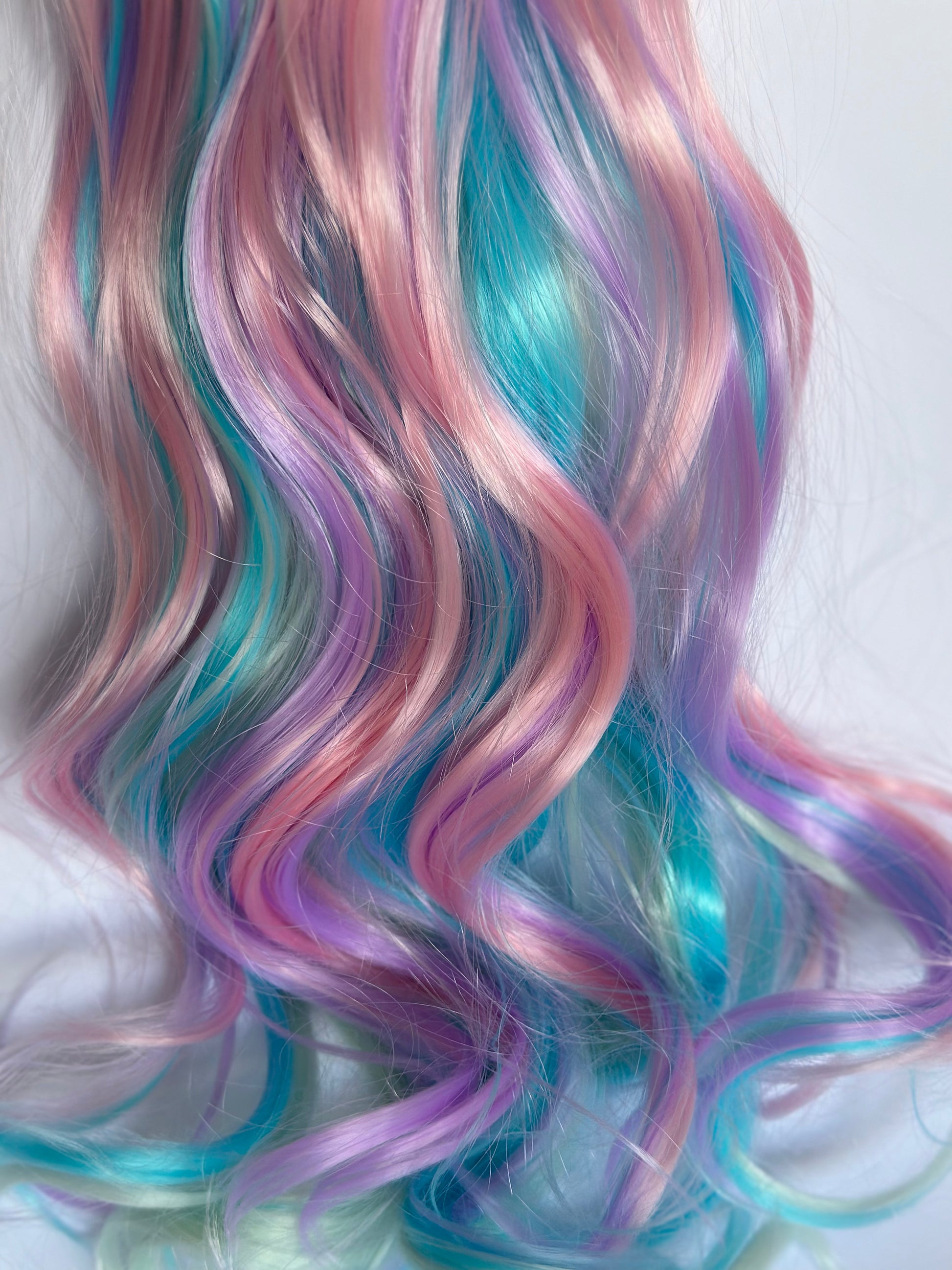A beautiful curly Ponytail streaked with all your favorite pastel tones, simply magical.