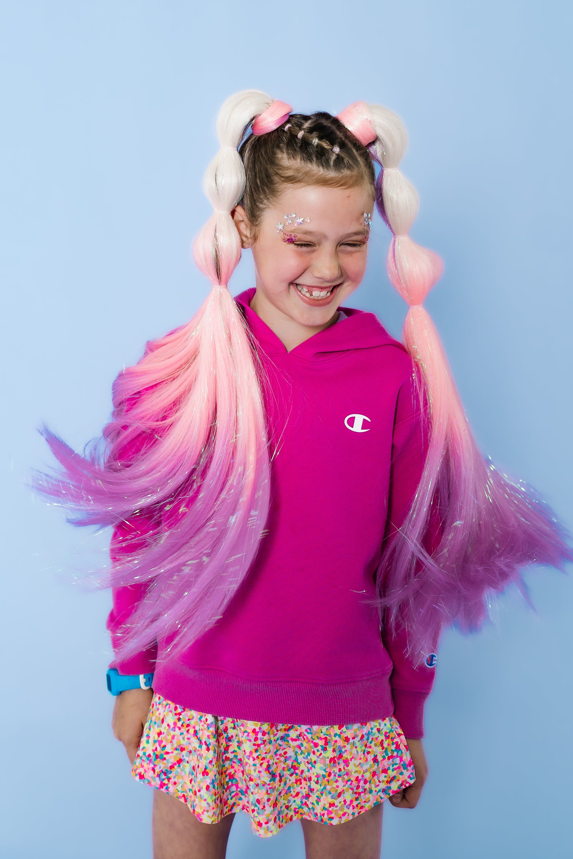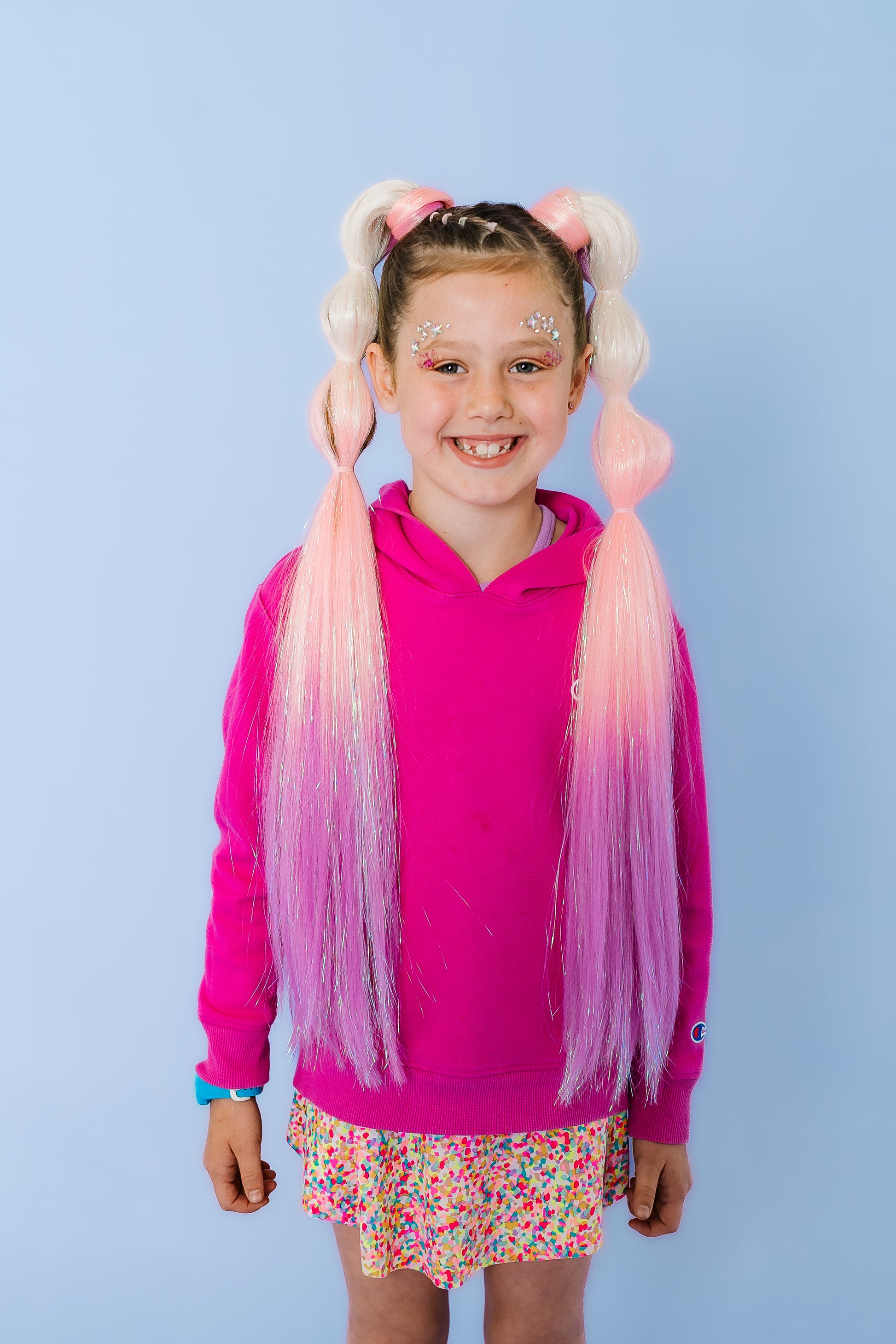 melting from sparkly blonde into a peachy pink then tipped with a soft violet- it’s a dream come true!